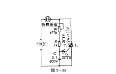 圖1—30用W、R、C組成移相電路。同步電壓取自3CTS的T1及T2兩端。觸發(fā)脈沖通過(guò)雙向二極管2CTS觸發(fā)3CTS雙向可控硅。改變W即可改變移相角控制輸出電壓。從而插于插座中的電燈或電熱器的亮度或溫度受到調(diào)節(jié)。本圖可控制不大于300W的家用電器。